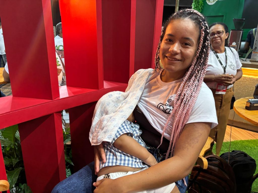 Cafeicultora dona do 9º melhor café do Acre participa da SIC acompanhada do filho de 11 meses