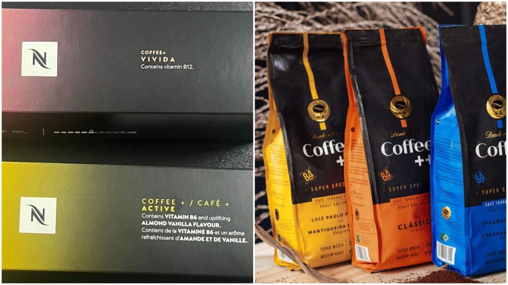 À esquerda, a caixa da Nespresso. À direita, produtos da Coffee Mais (Reprodução)