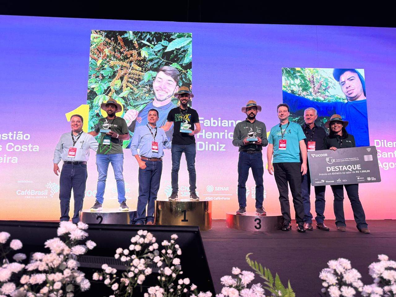 Entre os premiados, o produtor Fabiano Henrique Diniz se destacou com três categorias: 2º lugar geral, categoria Café Produzido por Jovens e Arábica/Cereja Descascado. Para ele, o momento representa mais do que uma conquista individual, é a confirmação da força coletiva da cafeicultura mineira. “Foi um ano muito atípico para nós, produtores, mas ter nosso trabalho e produto reconhecido em um evento como esse, independente da colocação, mostra que superamos as barreiras e avançamos na cafeicultura, comentou.”