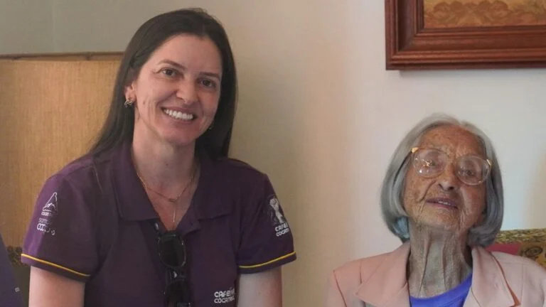 Marianne conhece Dona Henriqueta, que não viaja mais para feiras nem para eventos. Os 103 anos pedem planejamento cuidadoso em cada saída. Mas em janeiro deste ano, quando completou mais uma volta ao sol, estava rodeada pelas mulheres do Grupo Cafeína. As mesmas que, meses antes, tinham visto o vídeo do centro empresarial de Londres.