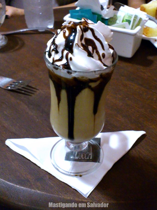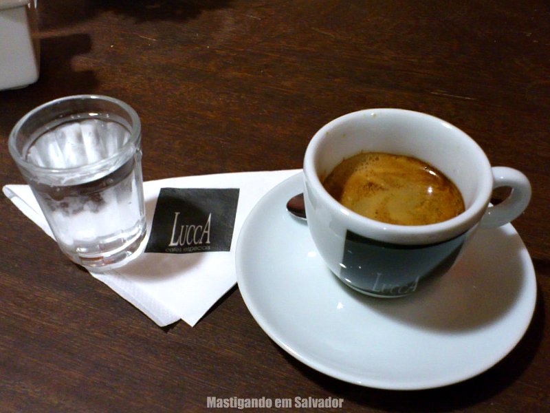 O Lucca Cafés Especiais é uma cafeteria originária de Curitiba/PR e, em Salvador, funciona no Salvador Shopping. É uma loja pequena, com algumas mesas na parte externa, outras na interna e mais algumas no mezanino. No dia da nossa visita, a casa estava cheia, e só havia 2 mesas vagas na parte externa. Apesar do trânsito de pessoas perto das mesas externas, o que incomodou mesmo foi o tamanho muito reduzido das mesmas. Praticamente não havia espaço para acomodar os nossos pedidos, e tivemos que fazer alguns malabarismos para nos servir e para tirar as fotografias. As mesas internas são um pouco maiores e proporcionam mais conforto.